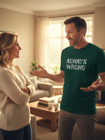 Featuring our signature "Always Wrong" slogan in a bold, playful font, this t-shirt is designed to spark smiles (and maybe a few giggles). Plus, it’s eco-friendly and carbon-neutral, because saving the planet is always right!