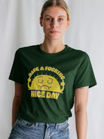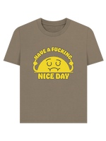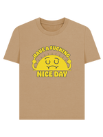 Brighten up your day (and everyone else’s) with Teevolution’s ‘Have a Nice F***ing Day’ Women’s T-shirt! Featuring a bold, sunshine graphic and cheeky slogan, this tee is for those who believe in spreading good vibes and a little attitude. Made from eco-friendly, organic cotton, it’s not just stylish but sustainable too – because why not be cool and kind to the planet? Designed and printed in the UK with a carbon-neutral approach, this tee is part of our mission to make fashion that doesn’t cost the earth. Whether you're taking on the world or just lounging, this t-shirt is your perfect sidekick. Plus, with our plastic-free packaging, you’re helping save the oceans while looking awesome. So, go ahead – make a statement, have a laugh, and join the Teevolution today! Life’s too short for boring tees.