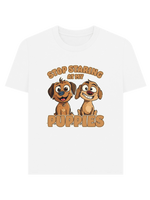 Channel your inner cheeky charm with our legendary "Stop Staring at My Puppies" women’s t-shirt! Featuring two adorable pups that are just too cute to resist, this tee is perfect for dog lovers who love to turn heads (and chuckle!).