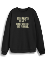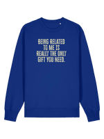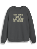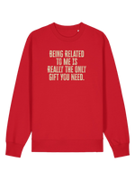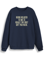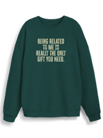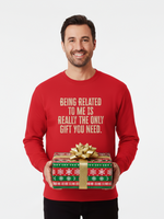 This isn't just any old festive knitwear; it's a witty, in-your-face declaration of your own magnificence, emblazoned with the legendary slogan: "Being related to me is really the only gift you need." Yep, you heard that right. Forget socks, forget novelty ties, you are the present!