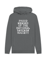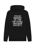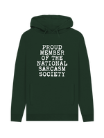 Introducing the legendary "Proud Member of the National Sarcasm Society" Men’s Slogan Hoodie from Teevolution – where wit meets warmth! If your wardrobe needs a dose of cheeky charm, this hoodie’s got your back (literally!). Crafted from our eco-friendly, organic cotton, it’s not just stylish; it’s planet-friendly too. Perfect for keeping cozy while you unleash your inner sarcasm, this hoodie is your new best mate for those cheeky pub outings or lazy days at home.