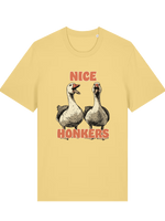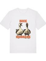 Pair it up with our “Stop Honkers” tee for a dynamic duo that’s as bold as your personality. It’s time to turn heads, spark conversations, and wear your puns with pride! So why wait? Join the Teevolution, and grab your “Nice Honkers” T-shirt today – because life’s better when you’ve got a little laughter on your side!