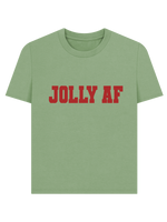 Get ready to sleigh the festive season with our Jolly AF Women’s Christmas T-Shirt! Made by your friendly Manchester family at Teevolution, this cheeky tee is crafted from vegan-friendly, organic cotton that's as soft as Santa's beard! With its witty "Jolly AF" slogan, this shirt is perfect for spreading holiday cheer while keeping it stylish and fun.