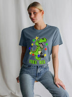 Get ready to rock around the Christmas tree with our legendary Tree Rex Women’s T-Shirt! This cheeky design features a jolly T-Rex all wrapped up in twinkling lights, bringing holiday hilarity to your festive wardrobe. Made from our comfy, vegan-friendly, organic cotton, this tee is perfect for showing off your love for dinosaurs and Christmas at the same time—because why not?
