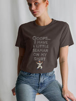 Set sail for some seriously cheeky style with our Seaman Women’s T-Shirt – the ultimate conversation starter! Featuring a playful graphic of a sailor and the hilarious caption: I have a little seaman on my shirt (we know, we know... we couldn’t resist either), this tee is bound to get a few double takes.