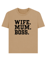 Unleash your inner superhero with our "Wife Mum Boss" Women's Slogan T-Shirt! Crafted from soft, vegan-friendly organic cotton, this tee isn’t just about looking fab—it's about making a statement! Whether you’re juggling school runs, endless to-do lists, or just need to remind the world who’s in charge, this shirt has got your back (literally).