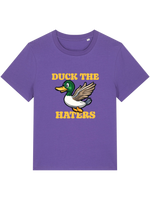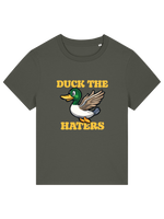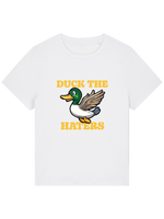 Duck the haters and quack on! Our Duck The Haters Women's T-shirt is the ultimate way to ruffle a few feathers while keeping your style on point. Featuring a bold graphic of a rebellious duck...