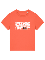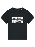 Introducing Teevolution's legendary Women’s Slogan T-shirt – perfect for those who aren't afraid to say what everyone’s thinking! With the cheeky slogan, "Everyone was thinking it; I just said it," you’ll wear your wit like a badge of honour while sparking smiles (and maybe a few giggles) wherever you go.