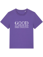 Unleash your inner rebel with our Good at Making Bad Decisions Women’s Slogan T-shirt. Perfectly quirky and effortlessly comfy, this tee is here to remind you that life’s too short to take seriously – so why not wear your bad choices with pride? Made from eco-friendly, organic cotton, this snazzy number is not just a giggle; it’s a statement on sustainability!