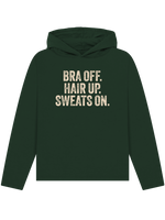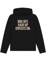 Introducing the Teevolution Legendary Women’s Slogan Hoodie – your new go-to for ultimate comfort and a cheeky statement! Crafted with love from vegan-friendly, organic cotton, this hoodie proudly sports the slogan “bra off. hair up. sweats on,” capturing that glorious moment when you kick back and embrace the real you.