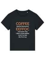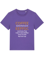 Wake up and smell the coffee… after you’ve donned our cheeky “Just Know That I Don’t Give Eeffoc Until I’ve Had My First Cup!” t-shirt! Crafted from 100% organic cotton, this legendary tee is not just a fashion statement; it’s a caffeine-fuelled anthem for all the groggy mornings out there. Perfect for the coffee lover who believes life’s too short for bad brews and awful moods.