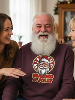 Get ready to sleigh the festive season with our Bearded and Jolly Christmas Jumper! This cheeky number showcases Santa Claus himself, complete with a belly laugh and a twinkle in his eye. Sporting the slogan “Bearded and Jolly,” you’ll not only be turning heads but spreading holiday cheer wherever you go.