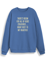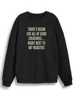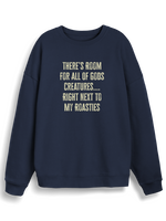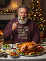 Alright, buckle up, Christmas dinner fanatics! Ready to make a seriously witty statement this festive season? Our legendary 'Little Creatures Christmas Jumper' has landed, and it’s serving up laughs hotter than your Boxing Day curries. Featuring the brilliant, utterly Manchester-banter-infused slogan: 'There's room for all of God's creatures... right next to my roasties,' this funny Christmas jumper is guaranteed to get giggles faster than Santa can down a mince pie.