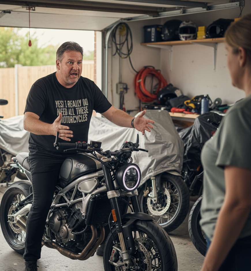 For the biker who’s got more horsepower than wardrobe space, meet your new ride-or-die tee. Our “Yes! I really do need all these motorcycles” slogan T-shirt is the perfect shoutout to your two-wheeled obsession. Funny, bold, and unapologetically petrolhead-approved.