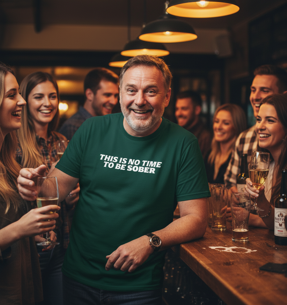 Get ready to raise a pint to good times with Teevolution’s cheeky "This Is No Time to Be Sober" Slogan T-Shirt! Crafted from our premium vegan-friendly, organic cotton, this tee is not just a statement – it’s a lifestyle choice that's as witty as your best mate’s jokes. Perfect for those nights out on the town or cozy pub crawls, this t-shirt dares you to embrace life with a laugh.