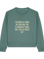 With the hilariously relatable slogan, “I’m gonna lay under the Christmas tree to remind my family that I am the perfect gift,” this jumper is pure banter. Designed in Manchester, printed right here in the UK, and made from the softest organic cotton, it’s kind to you and the planet. Looking for a unique Christmas gift for her? Or just want to treat yourself to something ridiculously comfy and utterly hilarious? This oversized tee is your ticket to seasonal smugness and maximum cosy. Get yours and Join The Teevolution – because saving the planet should be as fun as opening presents!