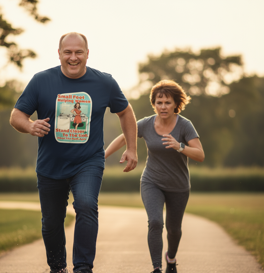 Equal parts retro and rebellious, our Small Feet T-shirt doesn’t tiptoe around outdated stereotypes—it stomps all over them. Featuring a vintage housewife in the kitchen and the slogan: “Small feet – helping women stand closer to the sink since the dark ages,” this tee takes the patriarchy, wraps it in sarcasm, and hangs it out to dry.