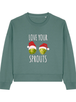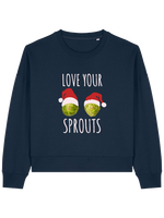 This ain't your nan's knit, this is banter woven into organic cotton. We've got two cheeky sprouts rocking Santa hats and that killer slogan: 'Love Your Sprouts'. It's the perfect way to spread some festive cheer (and a bit of a giggle) this holiday season.