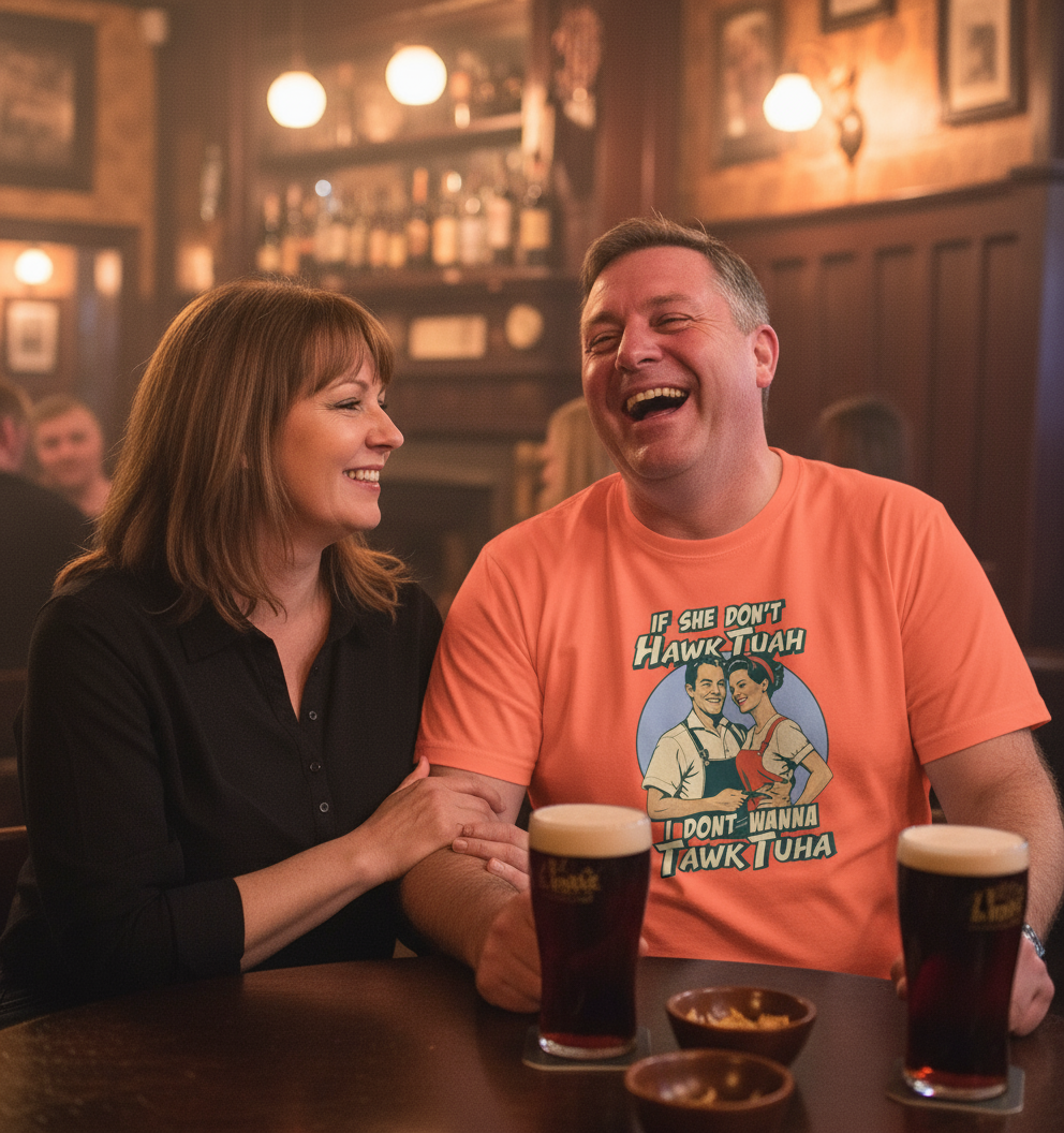 Hey there, T-shirt aficionado! Meet our Legendary Graphic T-Shirt, the ultimate combo of cheeky wit and retro vibes, perfect for making a statement. Featuring a nostalgic graphic of a couple standing side by side and the hilarious phrase, “If she don’t hawk tuah, I don’t wanna tawk tuha,” this tee is sure to spark conversations and laughs wherever you go!