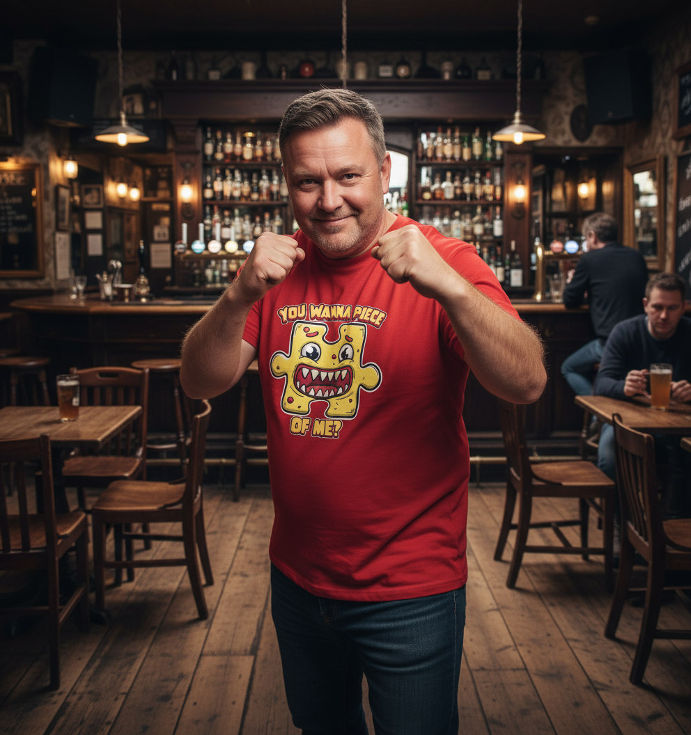Ready to throw down some serious sass? Meet the Wanna Piece T-shirt — part of Teevolution’s legendary Funny Graphic T-shirts collection. Featuring a snarling jigsaw puzzle piece and the bold words “Wanna piece of me?”, this tee is perfect for anyone who’s got a cheeky edge and isn’t afraid to wear it loud and proud.