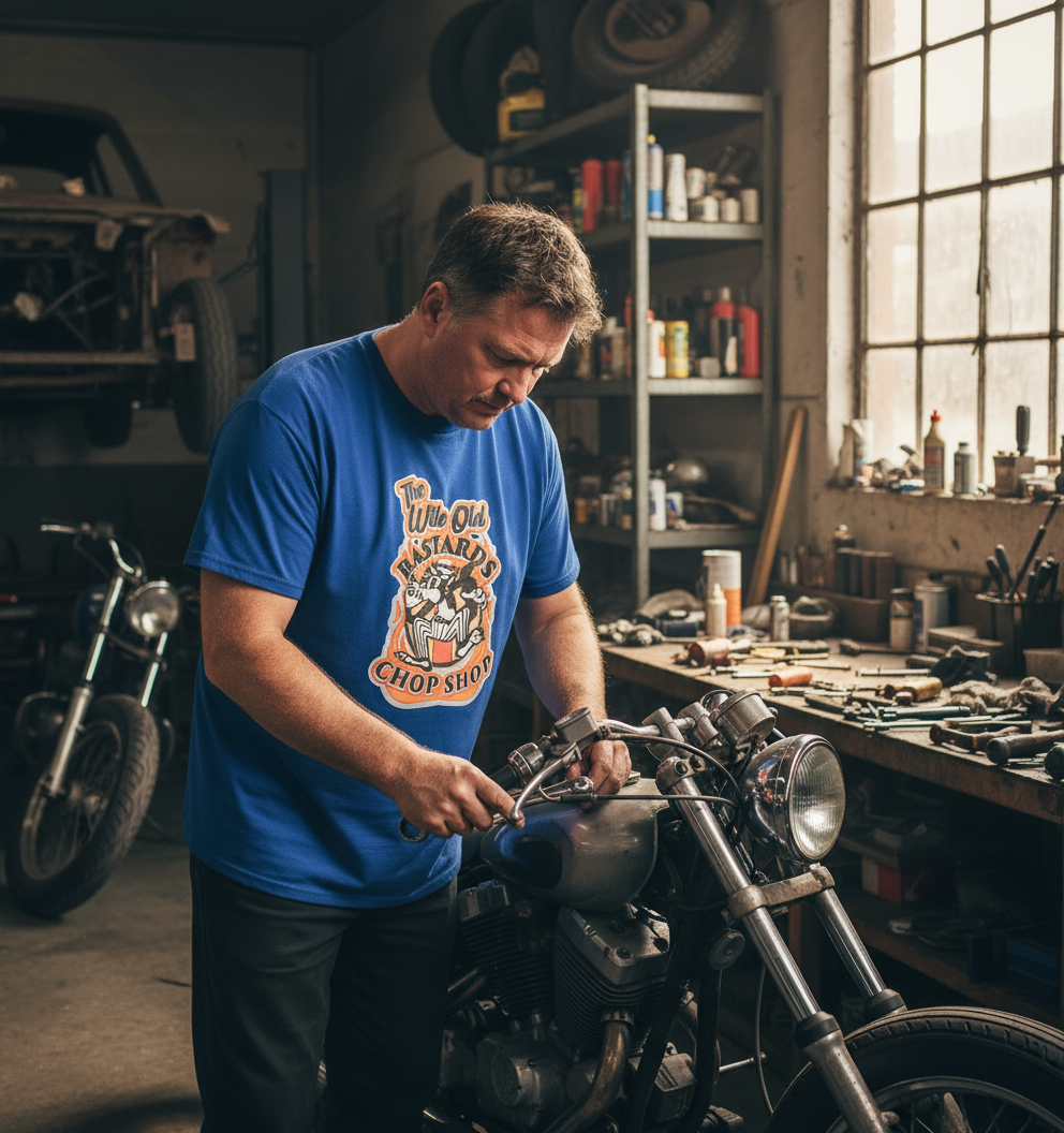 With a wickedly witty slogan, “The Wile Ole Bastards Chop Shop,” this t-shirt is the perfect conversation starter – you’ll have everyone laughing before you can say “cat nap!” Plus, our carbon-neutral production and plastic-free packaging mean you can wear it with pride, knowing you're doing your bit for Mother Earth.