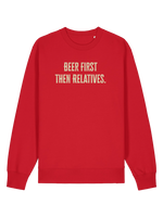 Crafted from super-soft, 100% organic cotton, this isn't just a laugh – it's a truly sustainable Christmas jumper. Vegan-friendly, carbon-neutral, and printed right here in the UK, we’re helping save the planet, one cheeky tee (or jumper!) at a time. Shipped in plastic-free packaging because we love our oceans as much as a good pint, join the Teevolution. Get your eco-friendly, 'Beer First Then Relatives' Christmas Jumper today and spread smiles, sustainably!