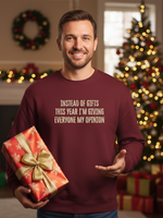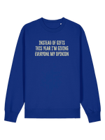 Tired of awkward silences or worse – actually buying gifts? This year, unleash your inner oracle with our legendary 'Giving My Opinion' Christmas Jumper! Featuring the cheeky slogan 'instead of gifts this year i'm giving everyone my opinion', this witty Christmas jumper is pure Manchester banter, designed to make everyone (especially you!) crack a smile.