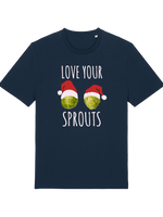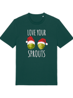 This isn't just any festive apparel; it’s a statement of green, glorious goodness. Featuring two ridiculously cheeky sprouts rocking tiny Santa hats and the glorious slogan, 'Love Your Sprouts,' you’ll be the life (and the conversation starter) of every awkward office party or family dinner. This is the ultimate Funny Christmas T-shirt for those who know real flavour when they see it.