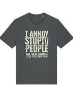 For those born with a built-in sarcasm detector and zero tolerance for nonsense, meet your new uniform: the Annoy People T-shirt. This bold slogan tee proudly declares: “I annoy stupid people and you’re looking a little upset right now” – because subtlety is overrated and honesty is hilarious.
