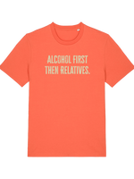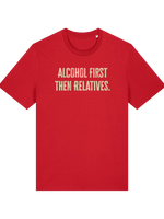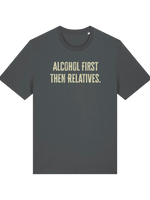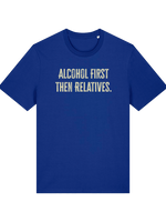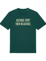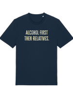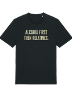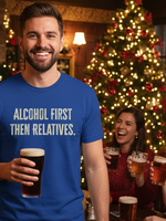 Planning for that inevitable family gathering? We’re not saying you need a survival strategy, but we are saying this 'Alcohol first then relatives' T-shirt is the most honest piece of clothing you’ll ever own. This isn't just a witty top; it's a declaration!