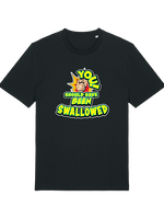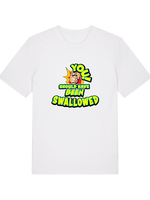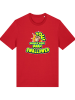 Unleash your cheeky side with Teevolution's legendary "Swallowed" Graphic T-Shirt! Featuring a hilariously bold design of a pointing finger and the iconic slogan "You Should Have Been Swallowed," this tee is perfect for those who appreciate a good laugh – or want to give one! Crafted from our super-soft, vegan-friendly organic cotton, you’ll not only look fabulous but feel fantastic, too. Plus, you can wear it knowing you're making a sustainable choice with our eco-friendly, carbon-neutral production.