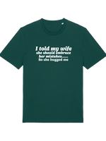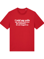 Get ready to turn heads and spark giggles with our Teevolution Slogan T-Shirt! Crafted from soft, breathable organic cotton, this tee is a cheeky reminder that laughter truly is the best medicine. Featuring the witty line “I told my wife she should embrace her mistakes… so she hugged me,” it’s the ideal conversation starter for pub nights or lazy weekends with mates.