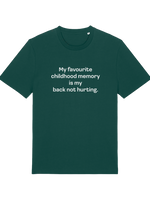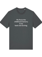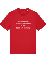 Remember when the only thing aching was your face from laughing too hard? Yeah, us too. Our Childhood Memory T-shirt, featuring the slogan "My favourite childhood memory is my back not hurting," is a nostalgic nod to simpler times—before dodgy mattresses and questionable posture ruined us.