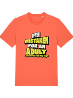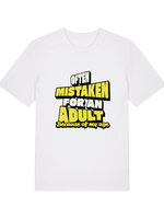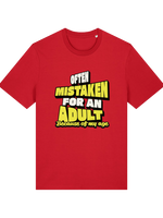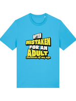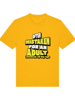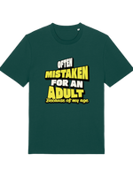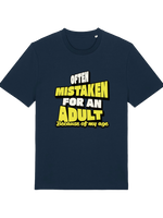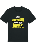 Ever find yourself paying bills, doing the weekly shop, or making ‘responsible choices’—only to realise you still have no idea what you’re doing? Yeah, us too. That’s why we made the Often Mistaken slogan t-shirt, featuring the brutally honest statement: "Often mistaken for an adult because of my age."