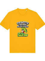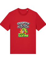Meet your new conversation starter – the Teevolution Legendary Slogan T-shirt! Crafted from super-soft, vegan-friendly organic cotton, this tee is as cheeky as it sounds. Featuring the hilarious slogan “Despite the Look on My Face, You’re Still Talking,” it’s perfect for those days when you’d rather be enjoying a pint (or two) than engaging in small talk.