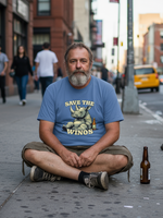 This ain't your average, run-of-the-mill tee, folks. We’ve slapped a hilariously tipsy rhino graphic on front, because let's face it, who doesn't love a good bit of anthropomorphism, especially when it involves a rhino who's clearly had one too many grapes. The slogan "Save the Wino's" is a tongue-in-cheek plea to humanity, or maybe just a good excuse to crack open another bottle. Either way, it hits the spot.