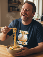 Craving a tee that’s as saucy as your favourite takeaway? Our Send Noods T-Shirt is serving up a steaming hot bowl of laughter! Featuring a cheeky graphic of a noodle bowl with the words Send Noods, this funny graphic t-shirt is the perfect recipe for smiles, double takes, and noodle-loving banter.