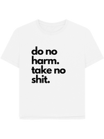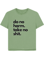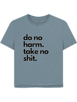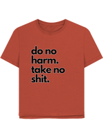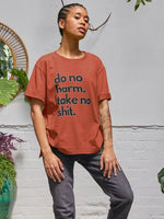 Unleash your inner warrior with Teevolution's legendary Women’s Relaxed Fit Slogan T-shirt! Featuring the cheeky mantra "Do No Harm, Take No Shit," this tee is the perfect blend of comfort and attitude – because who says you can’t look good while making a statement? Crafted from our eco-friendly, vegan-friendly organic cotton, it’s a kind choice for both your wardrobe and the planet.
