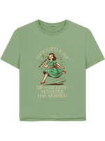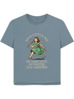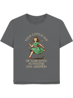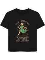 Introducing the ultimate wardrobe essential for all the cheeky queens out there! Our Women’s Relaxed Fit Graphic T-Shirt showcases a retro 1950s diva running with flair, perfectly paired with the witty slogan, "Your little ray of sarcastic sunshine has arrived." This tee isn’t just a fashion statement; it’s a comedic masterpiece that’ll have your friends giggling all day long!