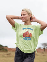 Crafted from vegan-friendly, organic cotton, this t-shirt is as kind to the planet as it is to your wardrobe. With carbon-neutral production and plastic-free packaging, you can wear it with pride, knowing you're part of the circular economy. So, why wait? Join the Teevolution and flaunt your witty side while saving the planet, one laugh at a time! Grab yours today and let’s make a splash – minus the hot tub!