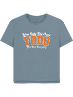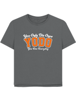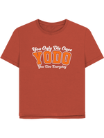 Unleash your inner philosopher with our Women's Relaxed Fit Slogan T-Shirt, featuring the cheeky motto, "Yodo - You Only Die Once, You Live Every Day!" Perfect for lazy brunches, epic adventures, or simply lounging on the sofa, this tee’s got your back while delivering a cheeky reminder to seize the day.
