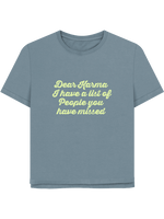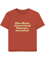 Introducing Teevolution’s legendary Women’s Relaxed Fit Slogan T-shirt: “Dear Karma, I Have a List of People You’ve Missed.” If you’re ready to rock a tee that spills the tea while keeping it comfy, you’ve hit the jackpot!