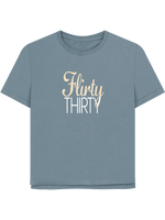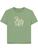With the witty slogan "Flirty Thirty" sprawled across the front, you’ll be turning heads and sparking smiles everywhere you go. Plus, it’s all wrapped up in our eco-friendly packaging, because who says looking great can’t also be kind to Mother Earth?
