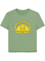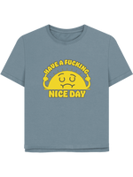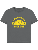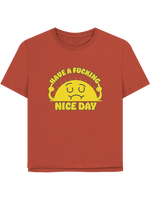 Kickstart your day with a smile and a little attitude in Teevolution’s Nice Day Women’s Relaxed Fit T-shirt. Featuring a bold sunshine graphic and the cheeky slogan 'Have a nice f**ing day,'* this tee is perfect for those who prefer their days with a dose of sass and sunshine. Made from eco-friendly, organic cotton, this shirt isn't just a statement piece – it’s a step toward a cleaner planet. With a relaxed fit and soft, sustainable fabric, you’ll be rocking comfort and style all day long. Plus, it’s printed, packed, and shipped with love from the UK, in plastic-free packaging. So, why not spread some good vibes while keeping it planet-friendly? Wear it, love it, and let the world know: it’s your day to shine! Join the Teevolution and wear your attitude proudly.