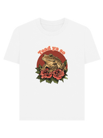Made from 100% organic, vegan-friendly cotton, this super-soft tee is as kind to the planet as it is to your skin. Printed using carbon-neutral methods in factories powered by renewable energy, it’s sustainable style at its finest. Plus, when you’re done, send it back, and we’ll recycle it into something new—because fashion should never croak and die!