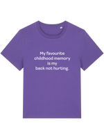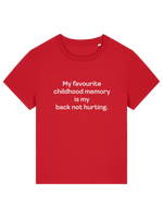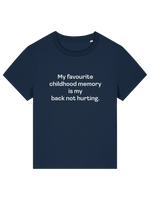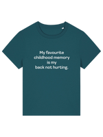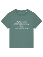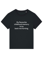 Our Childhood Memory Women’s T-shirt lets you wear that nostalgia loud and proud, featuring the witty slogan: "My favourite childhood memory is my back not hurting."