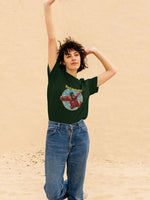 Certified Organic Cotton T-shirt, 155g/m2. Wash cool, hang dry. GM free. Not tested on animals. Does not contain animal-derived products. Printed in the UK with low waste printing tech. Made in a renewable energy powered factory audited for a wide range of social and sustainability criteria.