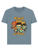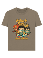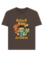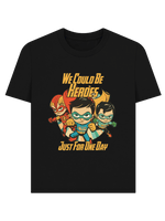Unleash your inner rock star with our “We Could Be Heroes” Women’s T-Shirt, inspired by the legendary Bowie classic! This isn’t just a tee; it’s a cheeky nod to those moments when you feel unstoppable—because, let’s be honest, who doesn’t want to rock out like a hero, even if just for one day? Made from vegan-friendly, organic cotton, this eco-chic tee is as kind to the planet as it is to your wardrobe. Featuring ultra-soft fabric and a fit that hugs you just right, you'll be comfortable enough to dance (or strut) your way through life. Plus, your purchase helps keep our oceans plastic-free. So go ahead, grab your guitar—or just a pint—and wear your passion with pride. Join the Teevolution today and show the world you’re not just a fan, you’re a hero!