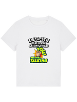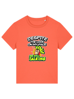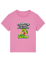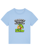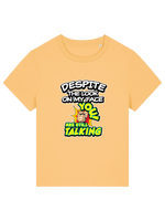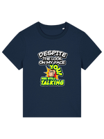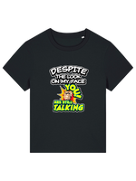 Introducing the legendary Women's Slogan T-shirt – the cheeky ensemble that perfectly captures your thoughts when someone just won't take a hint! Rock this organic cotton gem emblazoned with “Despite the look on my face, you’re still talking” and let your wardrobe do the talking (or not).