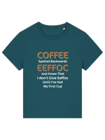 Wake up and smell the coffee… after you’ve donned our cheeky “Just Know That I Don’t Give Eeffoc Until I’ve Had My First Cup!” t-shirt! Crafted from 100% organic cotton, this legendary tee is not just a fashion statement; it’s a caffeine-fuelled anthem for all the groggy mornings out there. Perfect for the coffee lover who believes life’s too short for bad brews and awful moods.